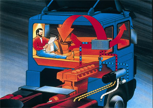 В транспорте с пассажирским салоном крупных размеров отопитель можно использовать для поддержания тепла в течение поездки. Вместе с двигателем и воздушными отопителями он будет составлять жидкостную систему отопления. Работа подогревателя по показаниям датчика температуры жидкости регулируется автоматически.