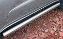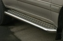 Боковые пороги на Toyota RAV-4 из нержавеющей стали диаметром 42 мм не боятся коррозии, сколов и царапин и выдерживают большие нагрузки. Боковые подножки-пороги с листом сделаны специально для автомобилей Toyota RAV-4 от 2000 г.в., легко устанавливаются и стильно смотрятся.