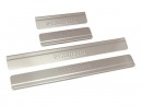 Накладки на порог двери — надежная защита штатных порогов от повреждений и царапин при посадке/высадке из авто. Многие автомобили комплектуются штатными накладками на пороги, однако чаще всего они изготовлены из пластика, поэтому быстро портятся и теряют свой вид. Поэтому лучшей альтернативой станут декоративные накладки на пороги из нержавейки.