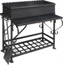 Дополнительно в комплекте: топка-печь для казана, решетка для гриля, держатели для вертела, крышка для жаровни, крышка барбекю, дровница, столик для посуды